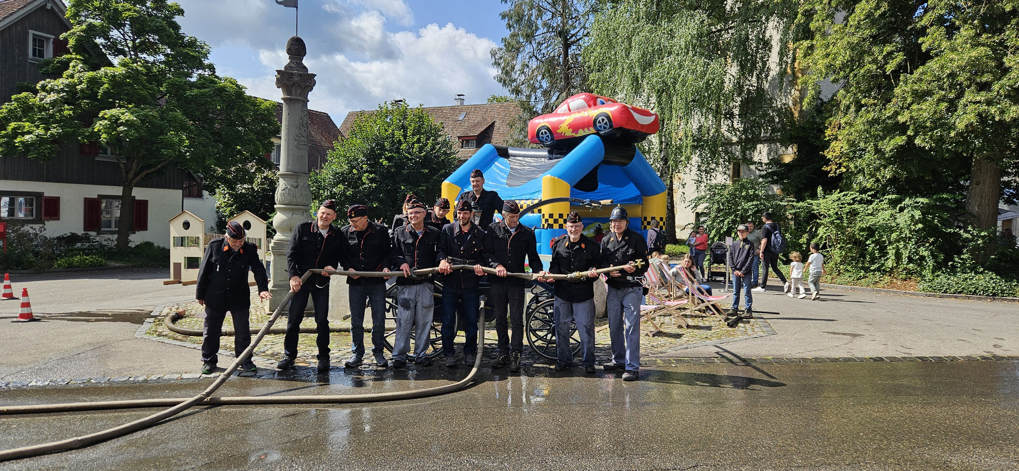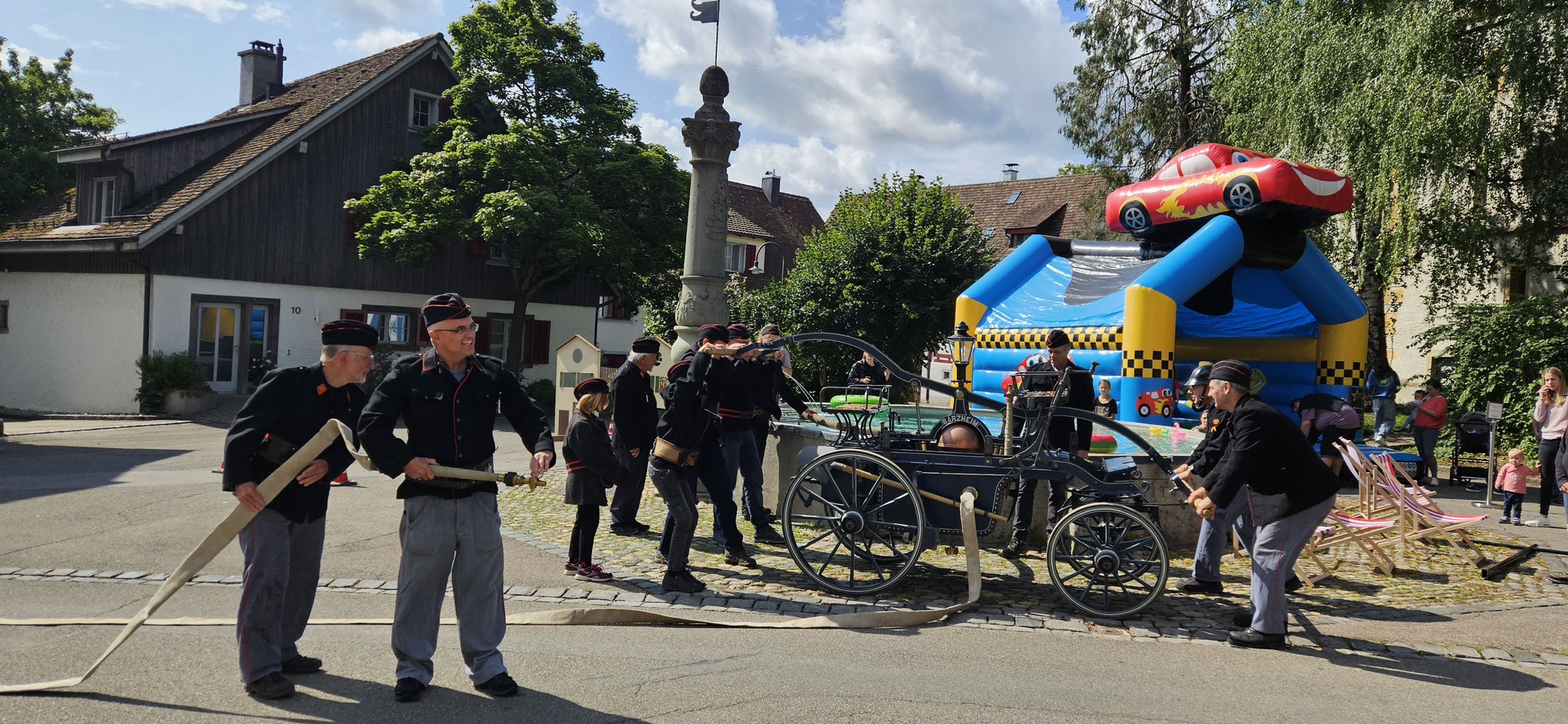 An der 1. August-Feier auf dem Kirchplatz standen wir zum löschen des "Sternen" im Einsatz. Wie gewohnt mit der aus dem Jahr 1892 stammenden Handdruckspritze aus Barzheim.